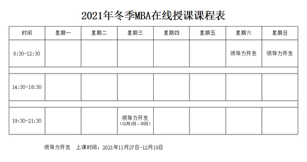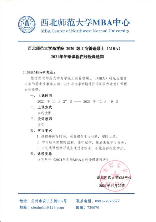 williamhill英国威廉希尔商公司 2020 级工商管理硕士(MBA)2021年冬季课程在线授课通知
