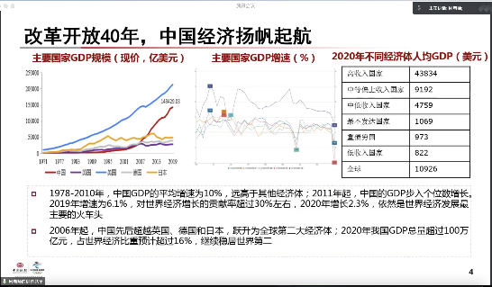 在williamhill英国威廉希尔迎来120周年双甲子校庆之际,商公司校庆系列学术活动——MBA新年论坛系列讲座首场学术报告于12月25日上午举行。中国银行研究院资深经济学家兼中部地区研究中心主任周景彤研究员,在线为公司全体MBA研究生和全日制研究生作了题为《“十四五”时期我国经济发展战略重点与市场新机遇》的学术报告。公司领导及部分老师参加了本次学术报告,报告由董青副经理主持。