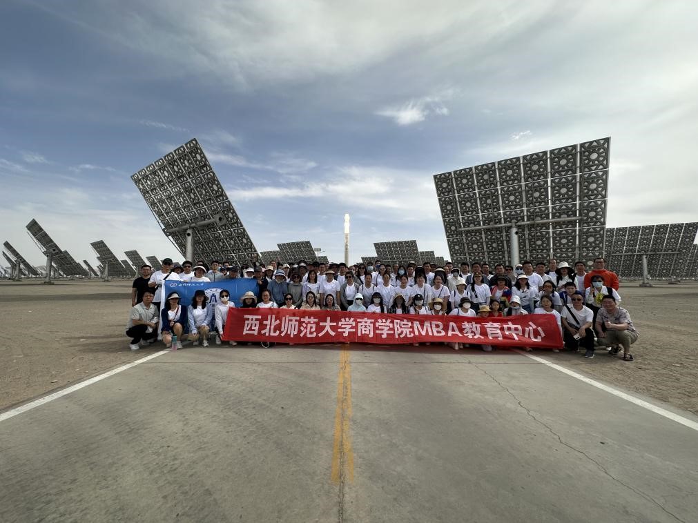 2023年7月6日,在商公司党委书记马科中、副经理何迎朝及MBA教育中心工作人员、专任教师的带领下, 110余名2021级、2022级MBA员工参观了位于大漠戈壁之上、目前国内最大的光伏发电示范基地——“敦煌光电产业园”。首先,学员们参观了该工业园区的数字展厅,在讲解员的带领下详细、全面地了解了光伏发电的原理、设施、设备、工业园区的建设里程等。