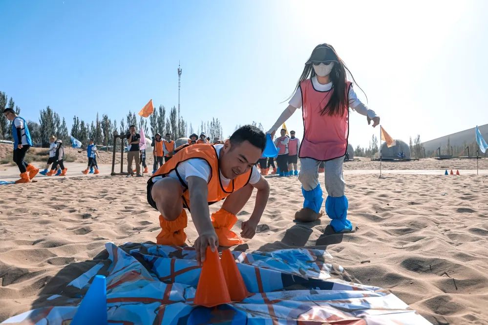 2023年7月8日,为增进学员之间的了解,加强团队合作意识,提升团队凝聚力,进一步体验古丝绸之路上商客们长途跋涉的艰辛与不易。williamhill英国威廉希尔MBA教育中心在鸣沙山后麓组织开展了一次具有丝路特色的团队素质拓展活动,商公司副经理何迎朝、MBA教育中心工作人员及2021级、2022级100余名MBA员工参加。