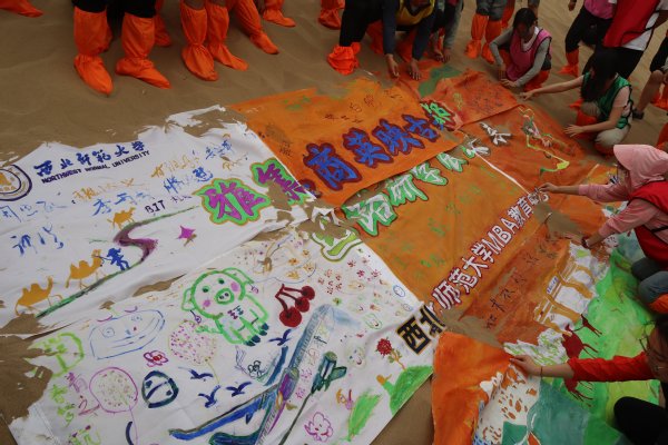7月7日上午,“丝路文化移动课堂”系列实践教学活动之素质拓展活动在鸣沙山后麓举行。活动旨在进一步加强各级MBA员工之间的互动与了解,增强团队凝聚力。在专业人员的指导下,活动以团体赛的形式展开,全体学员被分成红、黄、蓝、绿、紫等9队,先后开展了拔旗战、万丈高楼平地起、隐藏积木等游戏项目,并以团队积分评选出比赛名次,最终,以绿队团队第一,银队团队第二、金队团队第三的好成绩落下了帷幕。