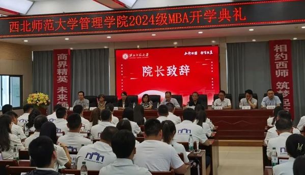 2024级非全日制班魏光哲同学代表新生发言,表达了对全体师长及亲友的感谢,表示MBA之旅将是人生中珍贵的一笔财富。作为西北师大人,站在新的起点上,将不忘初心、牢记使命,带着公司的关怀和期许,将所学、所知,落实到日常的工作中去,带领团队在所处的行业实践创新,铸大国重器,挺民族脊梁。2023级非全日制班班长周思敏同学代表在校生发言,向新生们分享了自己的一年来的经历与感悟,并对即将开启MBA旅程的2024级新生提供了经验借鉴。
