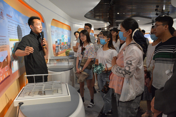 该产业园自2009年建设以来,已经成为国内集中连片面积最大的百万千万级光伏发电示范基地。参访过程中,学员们参观了该工业园区的数字展厅,在讲解员的带领下详细、全面的了解了光伏发电的原理、设施、设备、工业园区的建设历程。