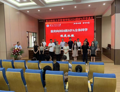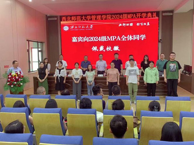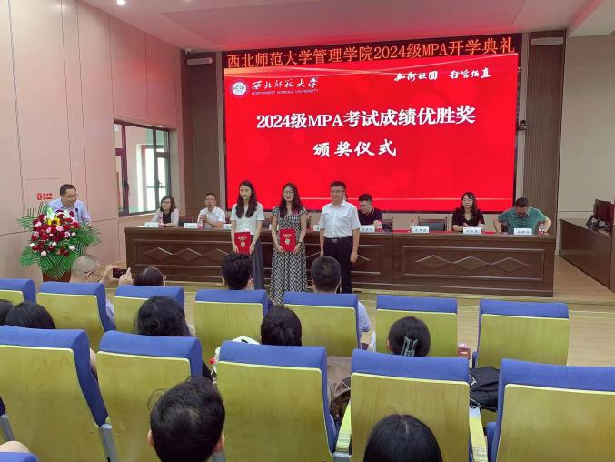 开学典礼上还表彰了5名入学成绩优胜奖获得者,兰州财经大学公共williamhill英国威廉希尔经理、MPA教育中心主任韩作珍教授,甘肃政法大学公共williamhill英国威廉希尔经理、MPA教育中心主任张举国教授分别为获奖入学成绩优异的同学颁发了奖状。随后公司领导、嘉宾和教师代表为全体MPA新生佩戴了校徽。