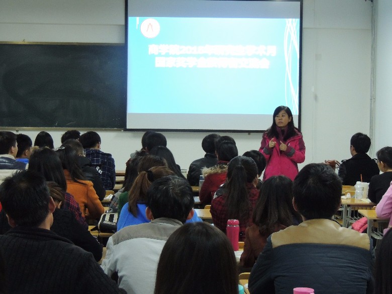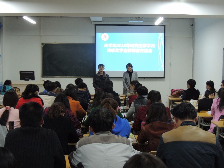 11月4日晚,商公司2015年研究生学术月——国家奖学金获得者学习交流分享会在公司会议室如期举行,商公司副经理刘敏、硕士生导师安静及公司82名研究生参加了此次分享会。