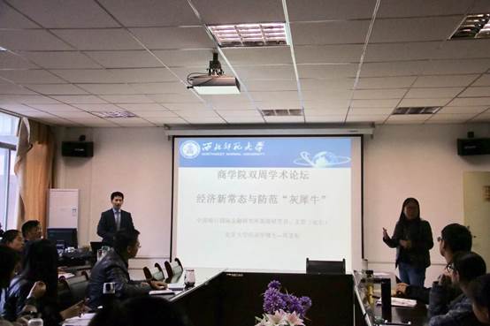 2017年10月23日,中国银行国际金融研究所的周景彤博士受邀来公司坐学术讲座,主题为——“新时代”与防范金融“灰犀牛”。本次讲座由张经理主持,商公司老师及在院研究生均到场参加,聆听这场关于“十九大”和经济发展新时代的精彩演讲。
