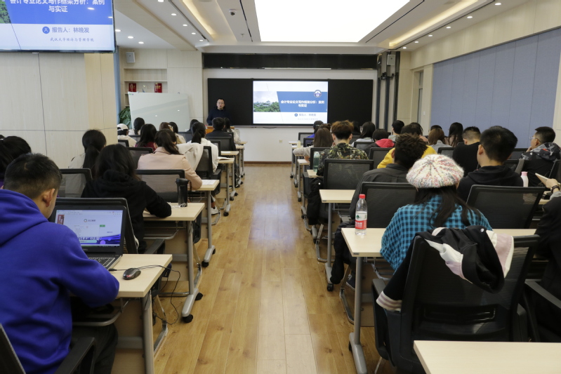 2020年10月30日,武汉大学经济williamhill英国威廉希尔副教授、MPAcc中心主任林晚发博士,受邀来公司做题为“会计学专业论文写作框架分析:案例与实证”的专题讲座。讲座在10C-506室举行,公司会计学专业教师、2019级和2020级会计专硕共70余人参加此次专题讲座。